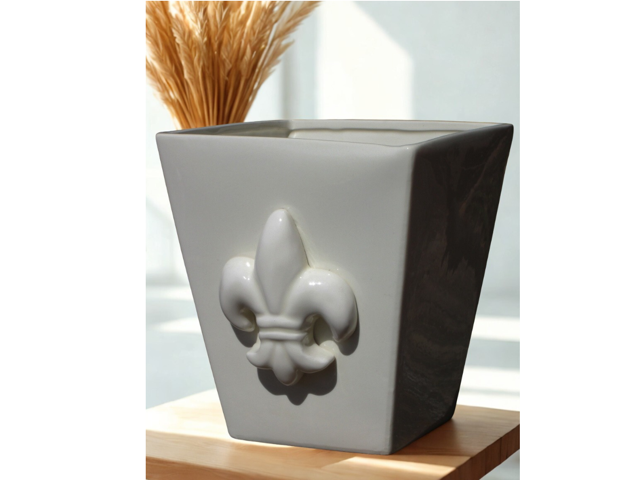 O Cachepot de cerâmica off white,com Flor de Liz ,é uma peça clássica.Feito em cerâmica na cor off white, excelente como vaso de flores ou cachepot para orquideas .Fica lindo em qualquer decoração por ser um modelo clássico.Você pode usar para gelar bebidas também. Peça elegante que todos adorariam ganhar de presente.Produto para pronta entrega na cor CRU.Clique em COR e vc verá outras opções de cores para esse produto.Medidas :