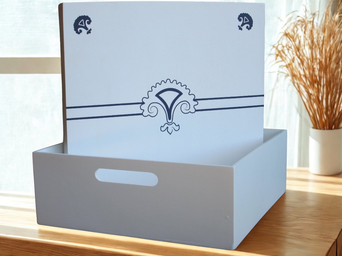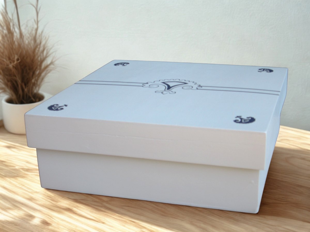 Descubra a elegância e funcionalidade da nossa Caixa de Madeira branca, com desenhos delicados em azul, da exclusiva Coleção Gorges. Esta coleção é composta por diversas peças diferenciadas, e esta caixa é uma das peças dessa linha. Ideal para presentear alguém especial, ela pode ser usada tanto para guardar objetos como para compor um ambiente decorativo único.