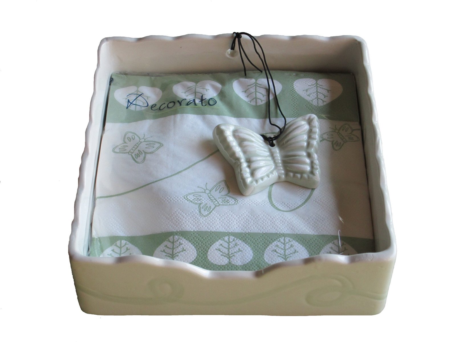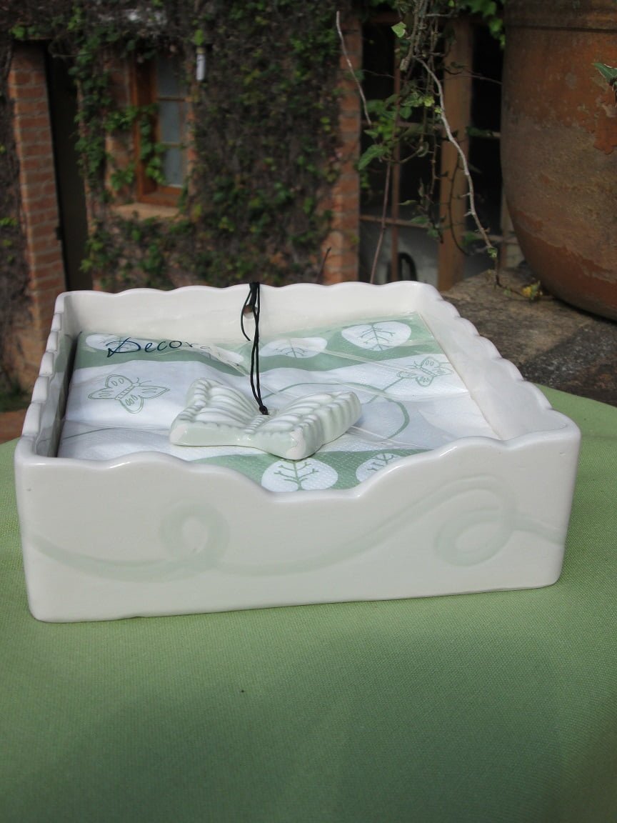 O Porta Guardanapos G é a solução perfeita para quem busca combinar funcionalidade e estética em um único produto. Projetado para comportar guardanapos de papel de tamanho grande, esta peça em cerâmica esmaltada traz um toque de sofisticação com sua coloração cru e desenhos em verde séladon. Seja em ocasiões especiais ou no uso diário, este porta-guardanapos elevará qualquer ambiente com sua presença discreta e elegante.